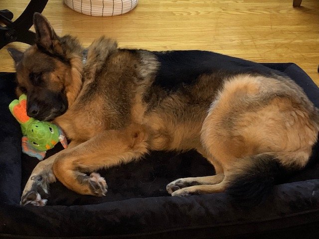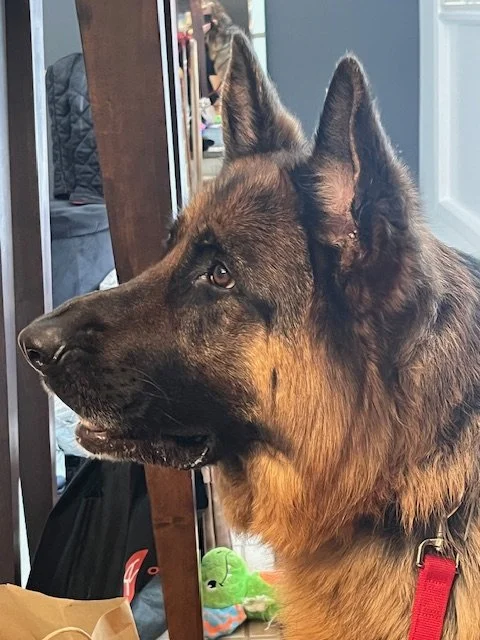 He loves his walks and especially his drives with my husband...even for coffee runs in the morning! Thank you again Krystyne for your help through the adoption process.”